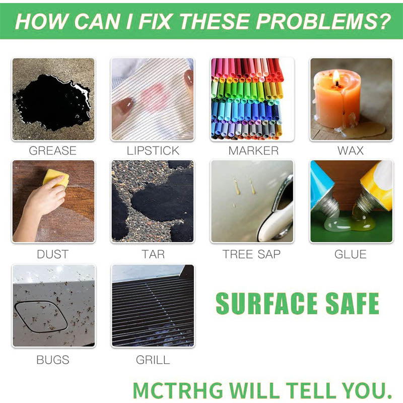 Stubborn offset printing such as AB glue, nail-free glue, double-sided glue, non-marking hooks, and marker marks can be quickly removed with just one spray.